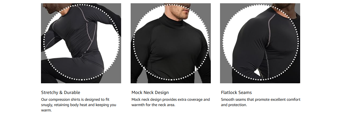 - [Stretchy & Durable]: Our compression shirts is designed to fit snugly, retaining body heat and keeping you warm.