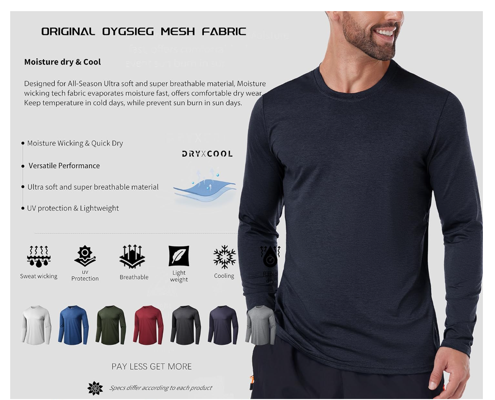 - Perfect Fit and Soft: Our mens long sleeve t shirts are made using a blend of 95% Polyester, 5% Spandex Strike the ideal balance between comfort and flexibility with a sweatshirt that is neither too loose nor too tight.