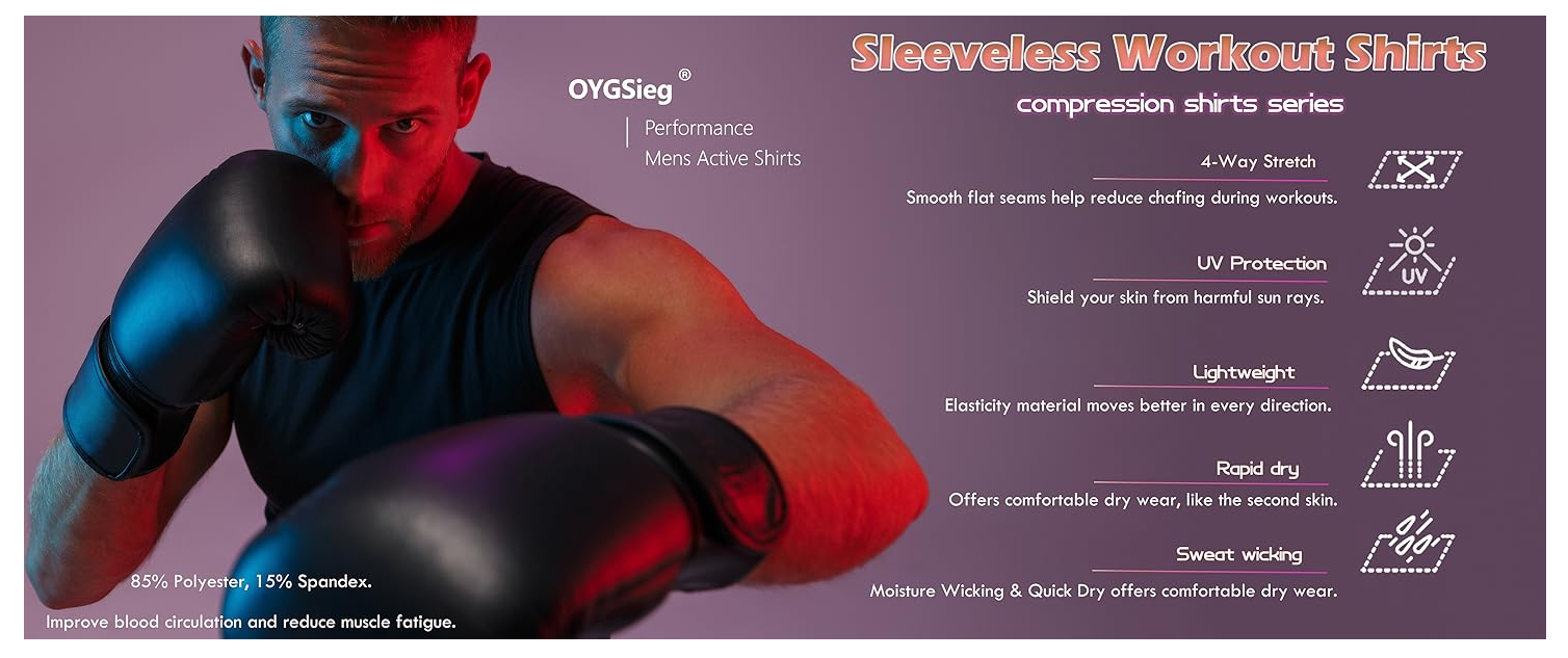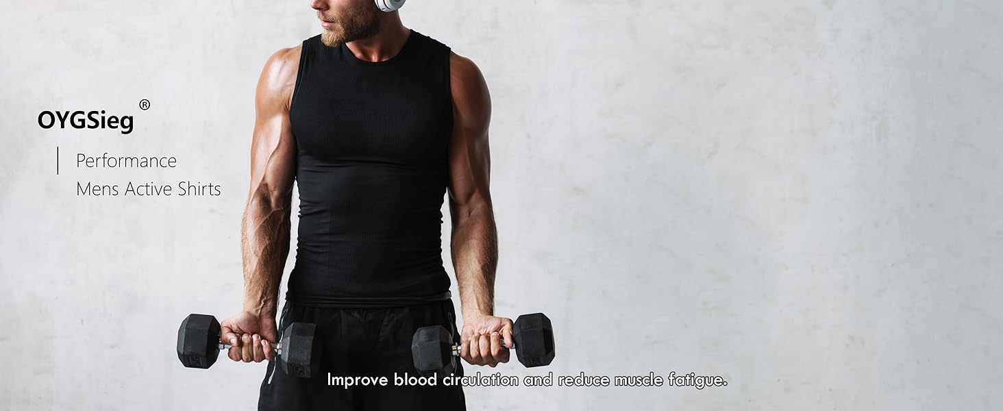 OYGSieg 6 or 3 Pack Men’s Athletic Compression Shirts Sleeveless Tank Top Base Layer Sports Workout Shirts for Basketball