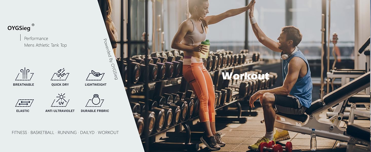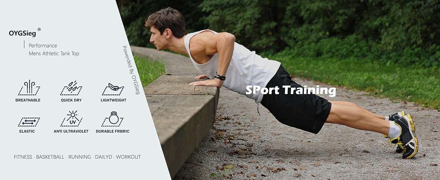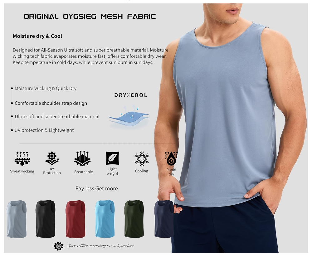 OYGSieg 6 Pack Men’s Quick Dry Workout Tank Tops Breathable Gym Sleeveless Muscle Shirts for Active Men setb