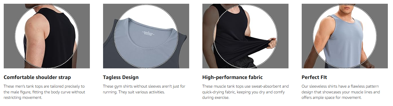 - High-performance and high-quality fabric: These muscle tank tops use sweat-absorbent and quick-drying fabric, keeping you dry and comfy during exercise. Even in humid weather, you regain dryness fast. Light as a feather, it’s like your second skin, adapting to all movements.