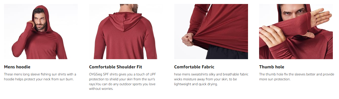 - Stylish Design: These mens long sleeve fishing sun shirts with a hoodie helps protect your neck from sun burn, while the thumb hole fix the sleeves better and provide more sun protection
