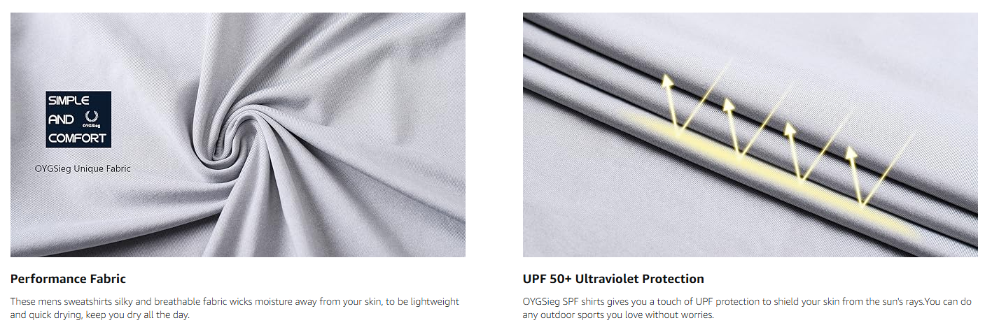 - UPF Ultraviolet Protection: OYGSieg SPF shirts gives you a touch of UPF protection to shield your skin from the sun’s rays.You can do any outdoor sports you love without worries.
